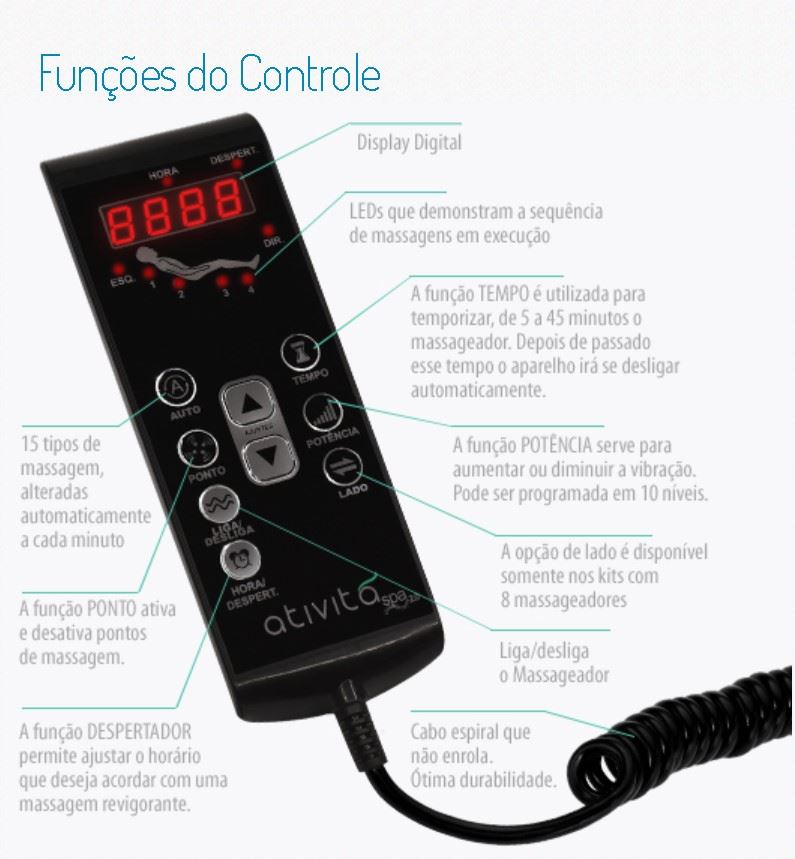 • 15 programas que proporcionam diferentes tipos de vibração com 10 níveis de potência;
