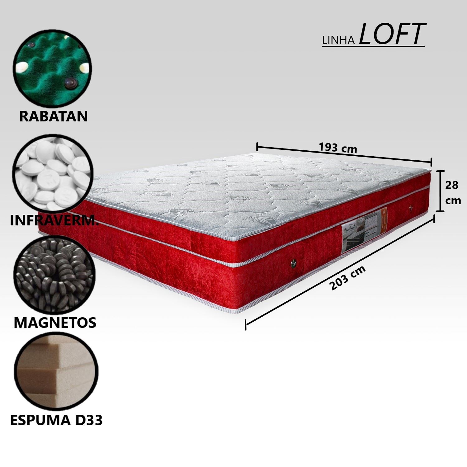 Colchão Magnético King LOFT com 16 Motores Massageadores Com Energia Bio Quântico Vermelho